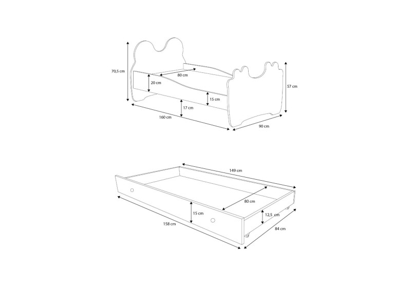 Димензиите на производите се изразени во сантиметри и се подредени по следниот редослед: ширина / длабочина / висина.
