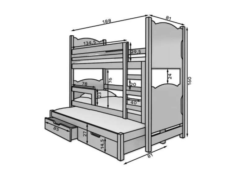 ДЕТСКИ КРЕВЕТ НА СПРАТ ЛЕТИЦИЈА СО ДУШЕК СИВА