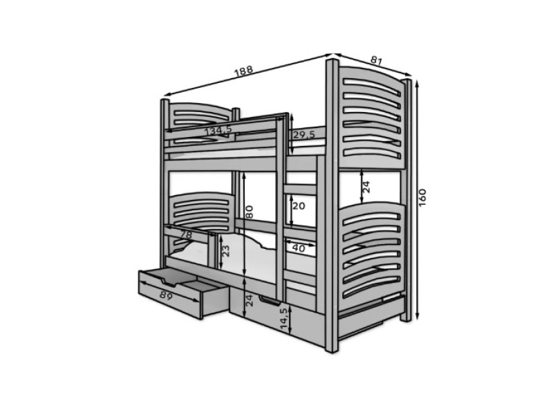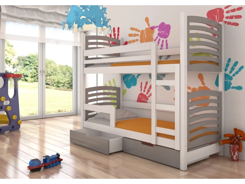 ДЕТСКИ КРЕВЕТ НА СПРАТ ОСУНА СО ДУШЕК БЕЛА-СИВА