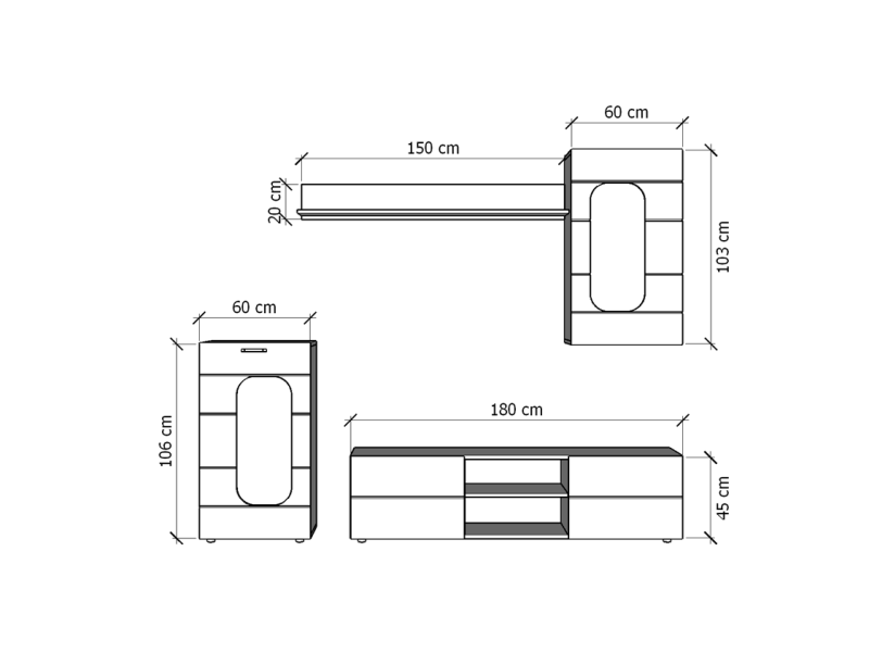 Димензиите на производите се изразени во сантиметри и се подредени по следниот редослед: ширина / длабочина / висина.