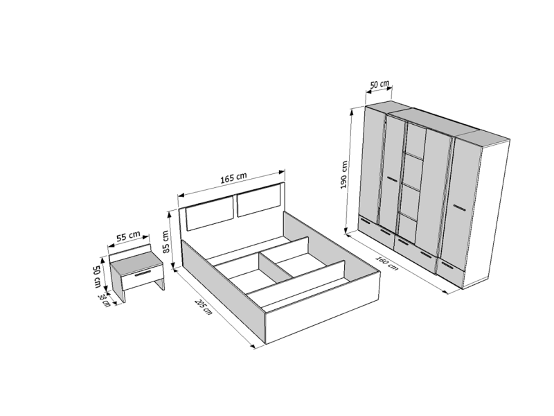 Димензиите на производите се изразени во сантиметри и се подредени по следниот редослед: ширина / длабочина / висина.
