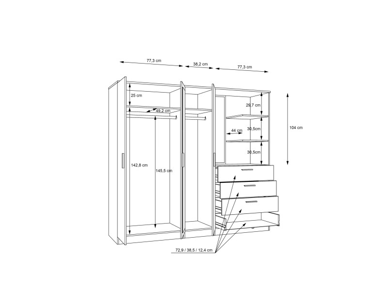 Димензиите на производите се изразени во сантиметри и се подредени по следниот редослед: ширина / длабочина / висина.