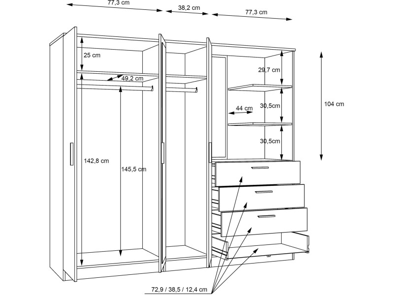 Димензиите на производите се изразени во сантиметри и се подредени по следниот редослед: ширина / длабочина / висина.