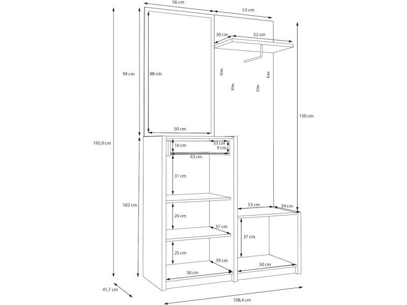 Димензии: 115 x 41,4 x 198 cm
